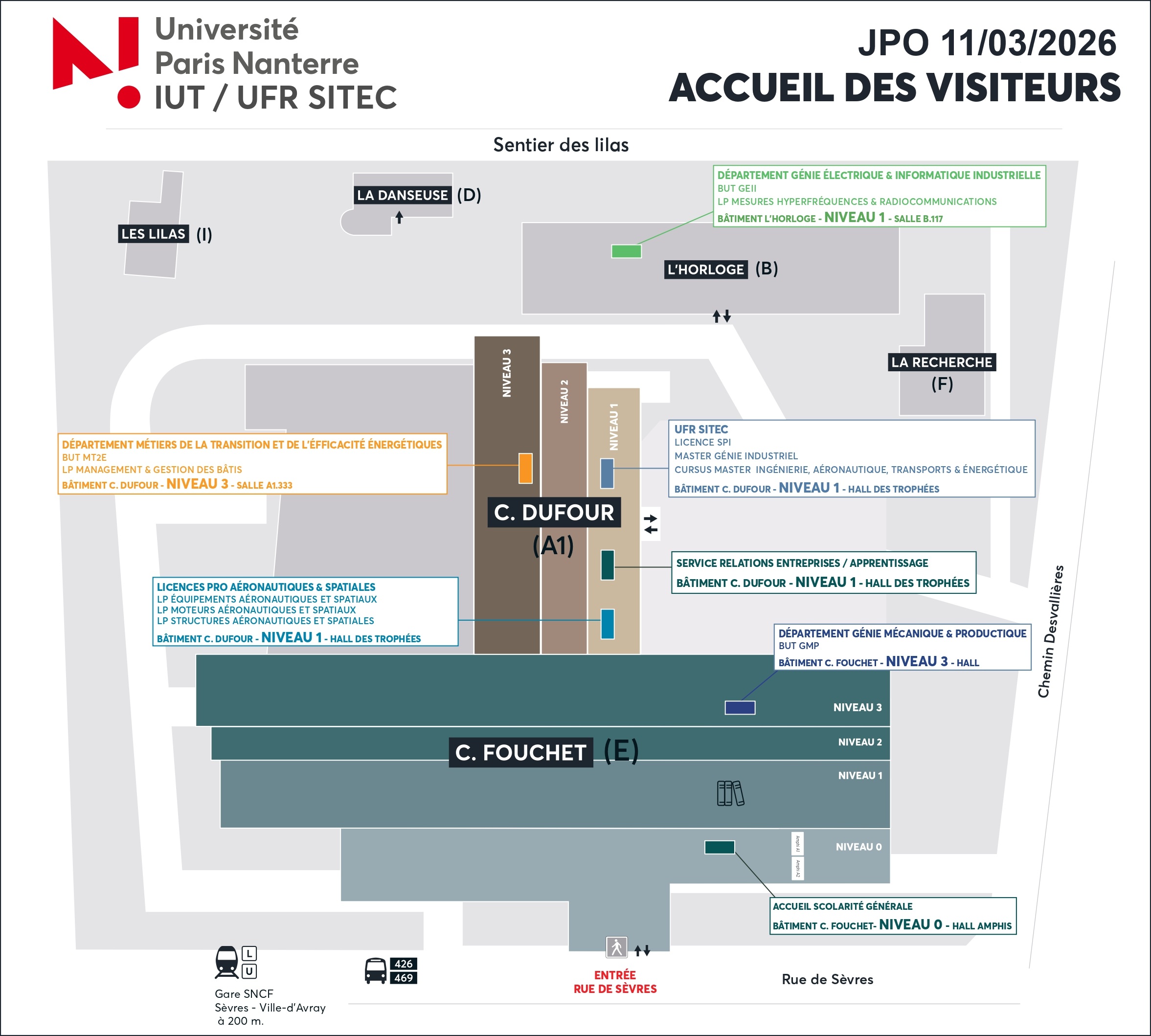 Ces journées sont l'occasion de rencontrer les enseignants, enseignants-chercheurs et les étudiants, d'assister aux conférences de présentation des formations (IUT uniquement), de visiter les locaux d'enseignement et les laboratoires avec un guide enseignant, enseignant-chercheur ou étudiant. Renseignez-vous en amont sur les formations de l'UFR SITEC :